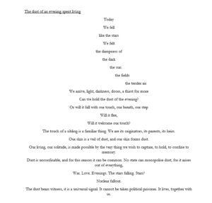 Home » 2020 » Page 3The dust of an evening spent living by Fiona Zeka, Age 17, Year 12, St Paul's Way Trust School © Copyright 2020 Fiona Zeka. All rights reserved.
