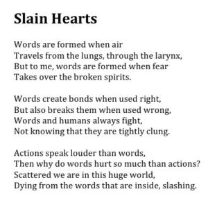‘Slain Hearts’ by Kaveesha Liyanage, age15, Year 10, Cottenham Village College