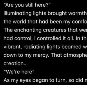 The roses are dead, The thorns no longer prick, The red is blue, The tale is no longer a blessing of time, The light at the end of the tunnel, Was just a myth, Forever unproven, And unbelievable, For we couldn’t bear, Accept, The reality The shifting of a world, We didn’t get a chance …